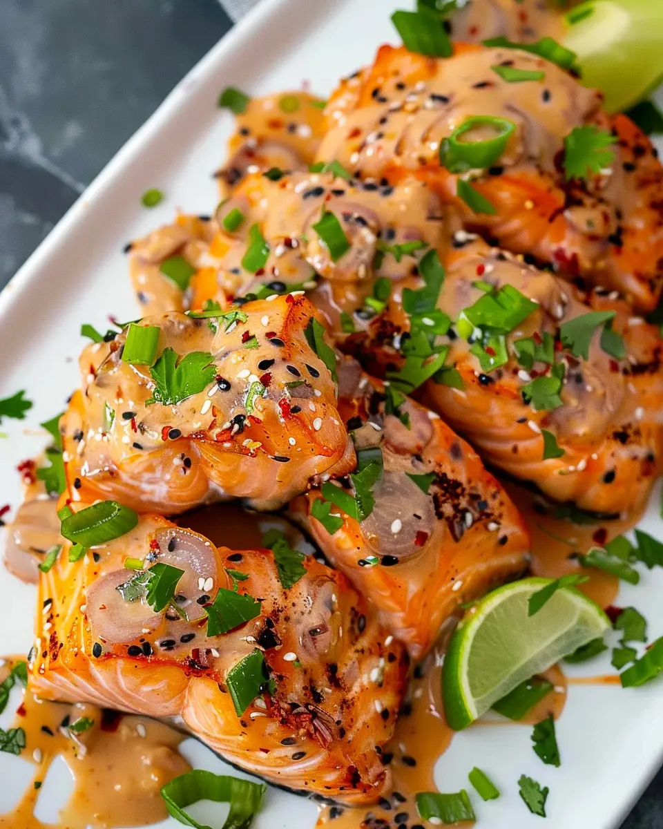 In summary, Bang Bang Salmon delivers a delightful blend of flavors that will make your taste buds rejoice. This quick and easy recipe not only emphasizes the rich, buttery taste of salmon but also introduces a creamy, spicy sauce that perfectly complements it. Perfect for a busy weeknight dinner or a gathering with friends, it’s sure to impress.