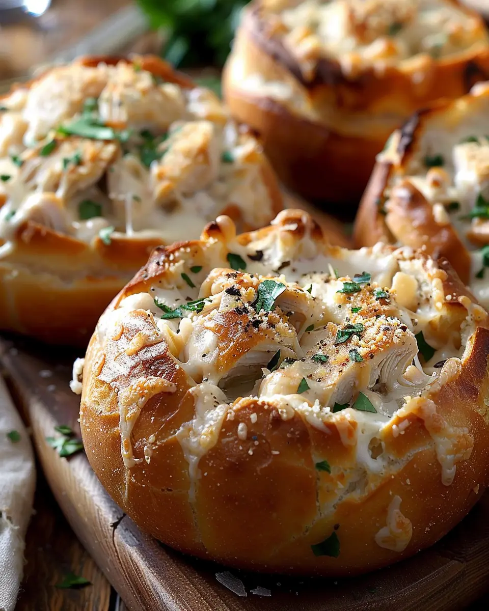 Chicken Alfredo Garlic Bread Bowls: Easy Comfort Food Delight