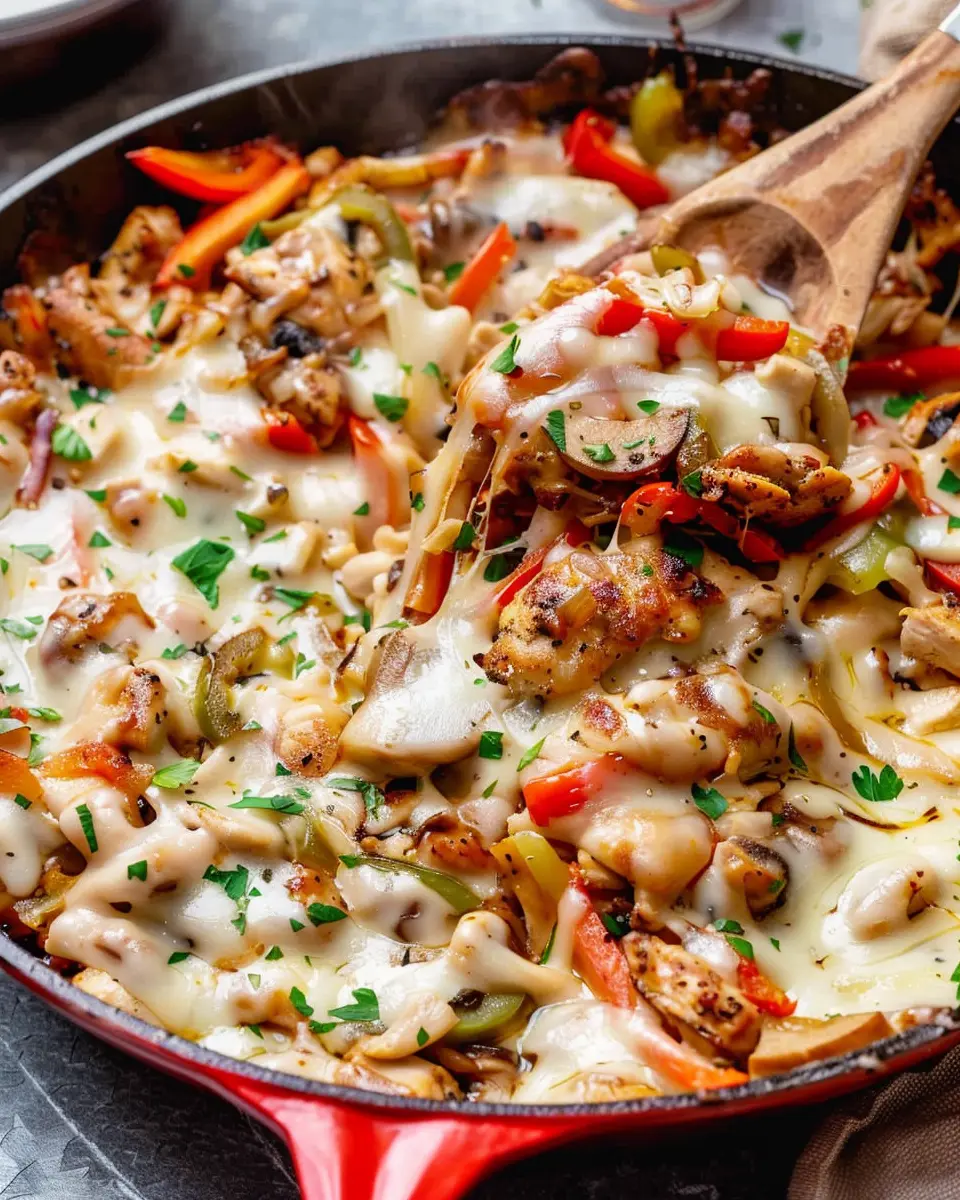 PrintChicken Cheesesteak Skillet: Easy Comfort Food for Any Night