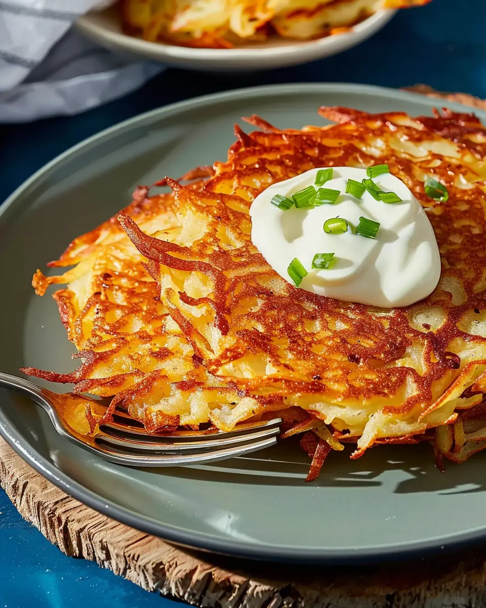 For more about the rich history and variations of potato pancakes, you might find this article interesting. Add your favorite toppings, like turkey bacon or chicken ham, to elevate the dish even more!