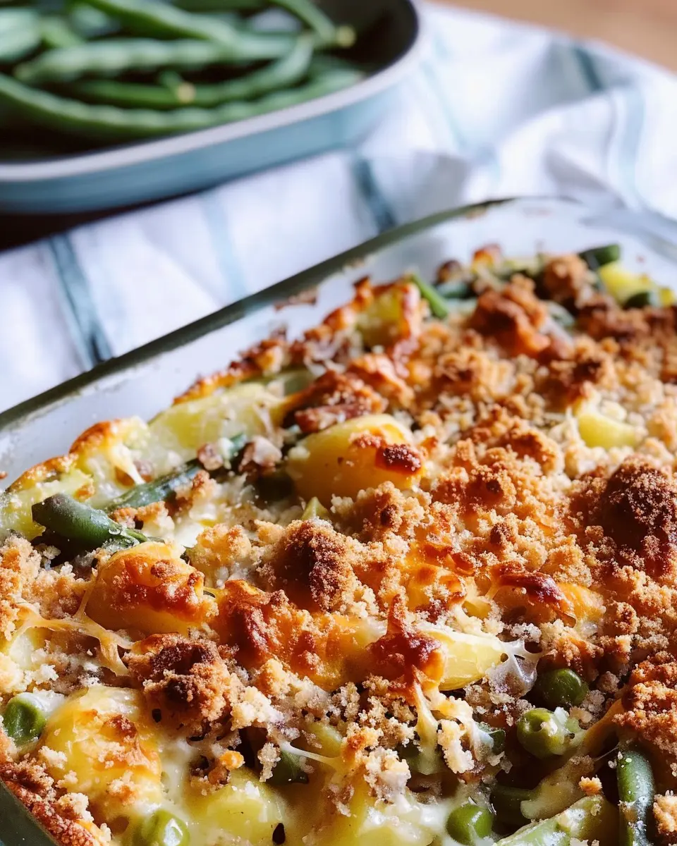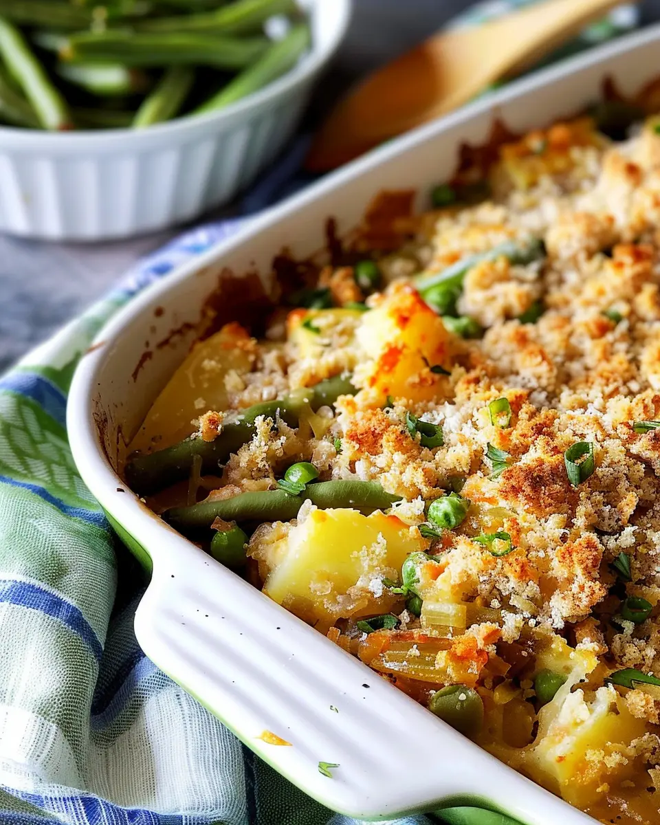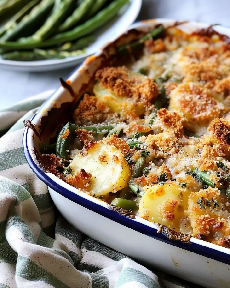 A delicious green bean and potato casserole that brings comfort and joy to your table.