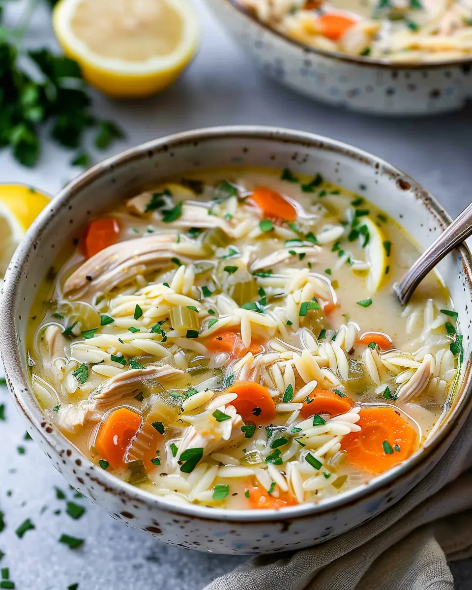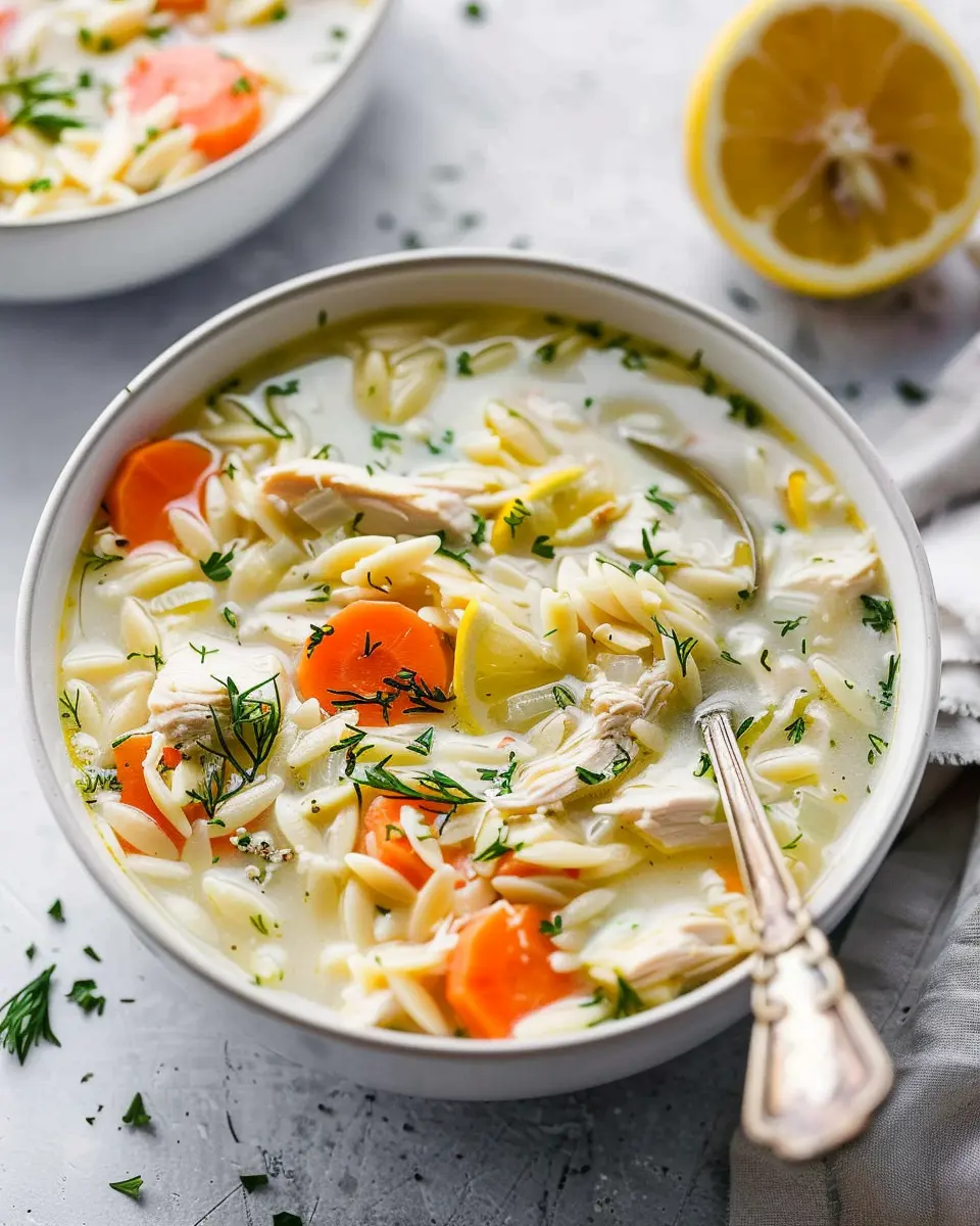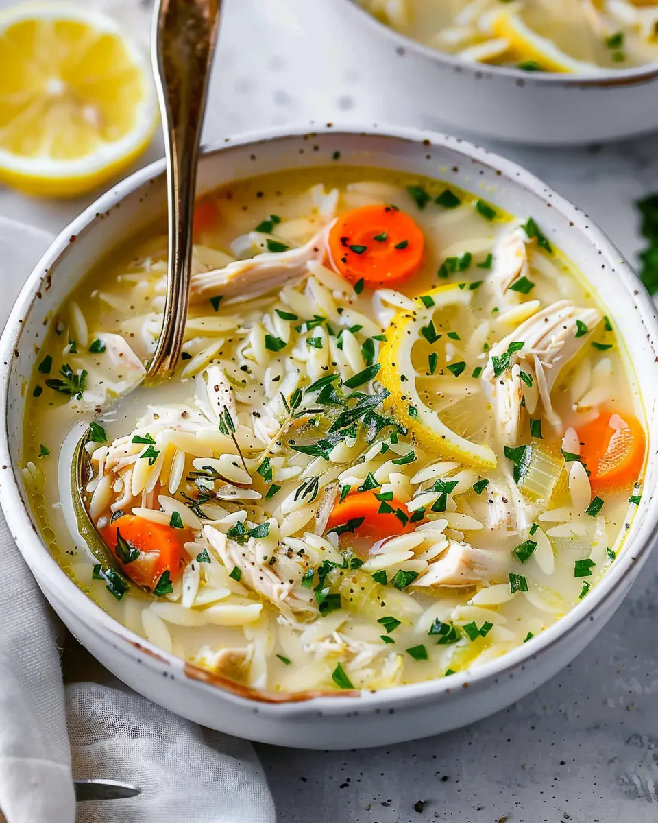 A light and flavorful soup that combines lemon, chicken, and orzo for a comforting meal.