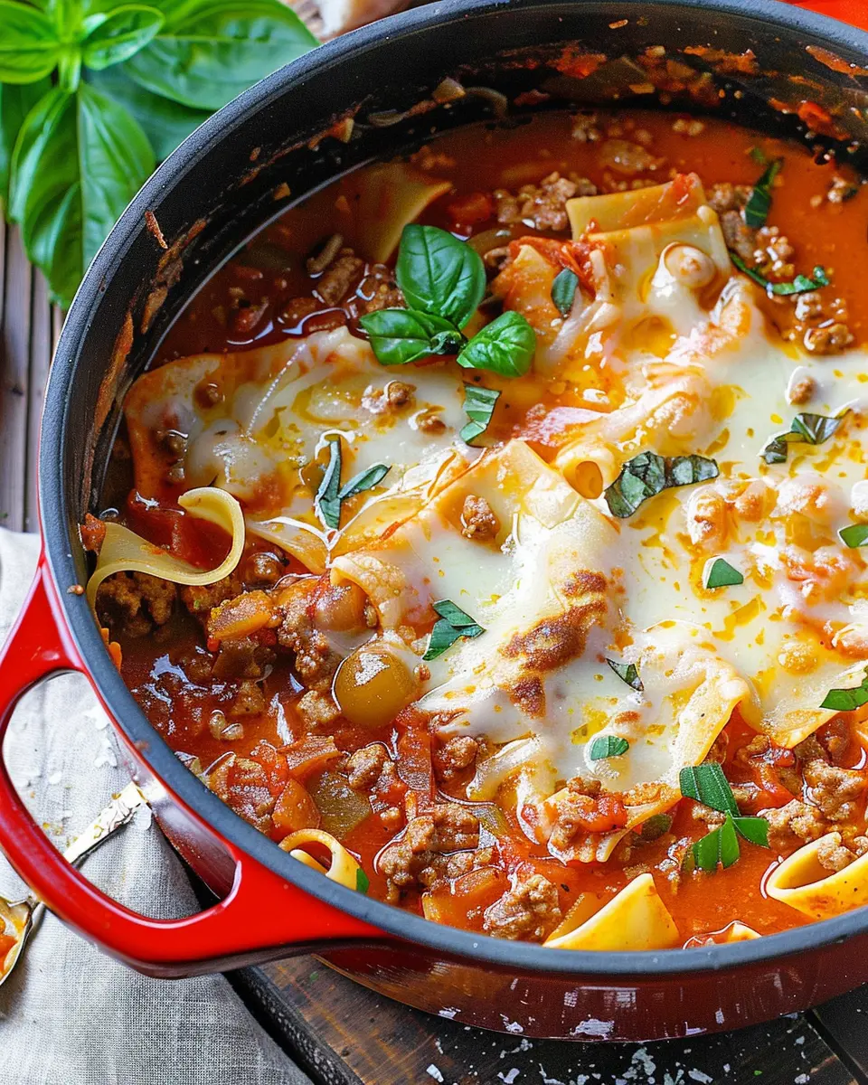 A warm and hearty dish that combines all the flavors of traditional lasagna into a delicious soup, perfect for cozy nights.