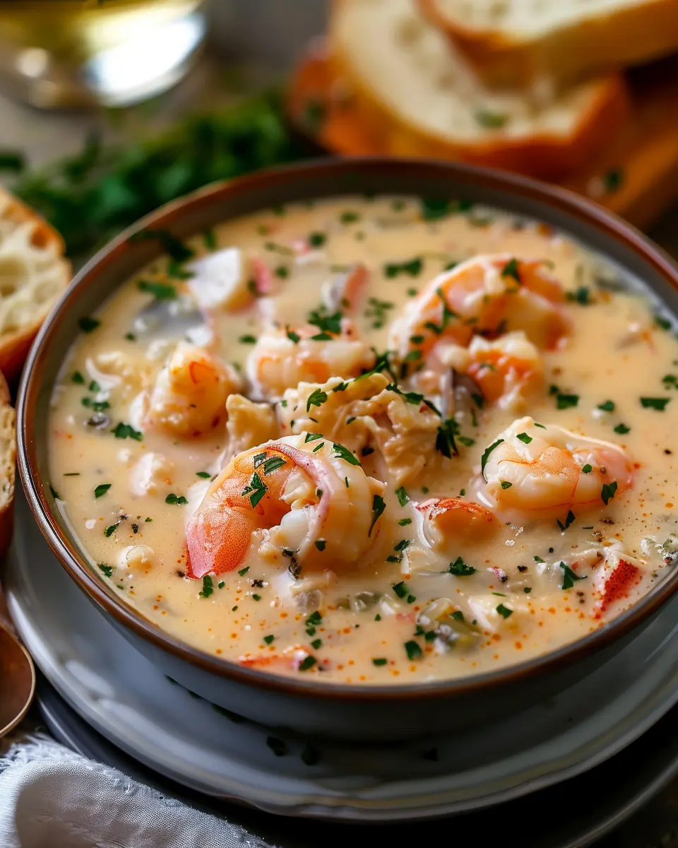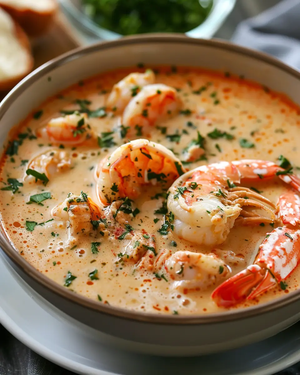 A luxurious and creamy bisque packed with the rich flavors of crab and shrimp, perfect for indulgent occasions.