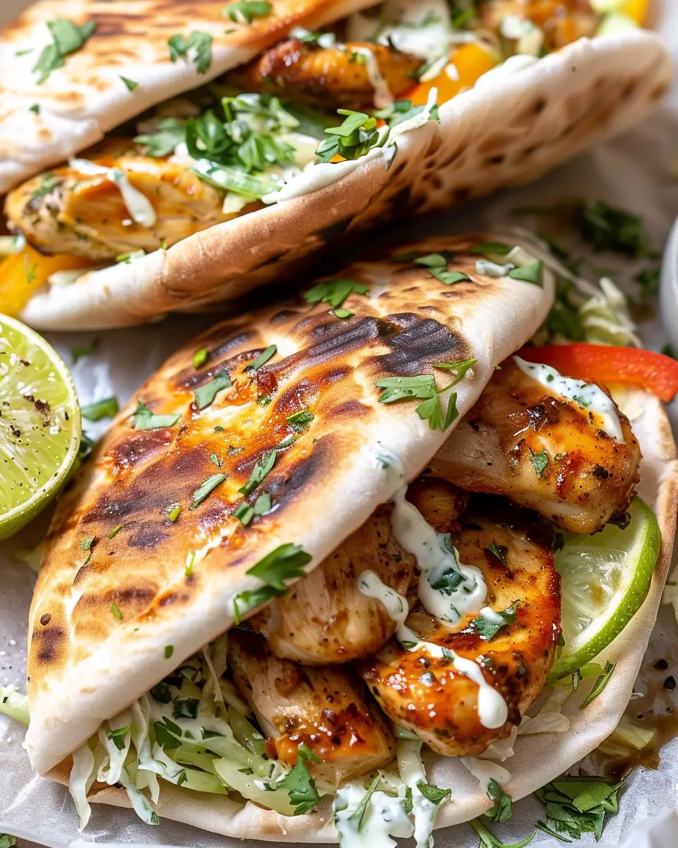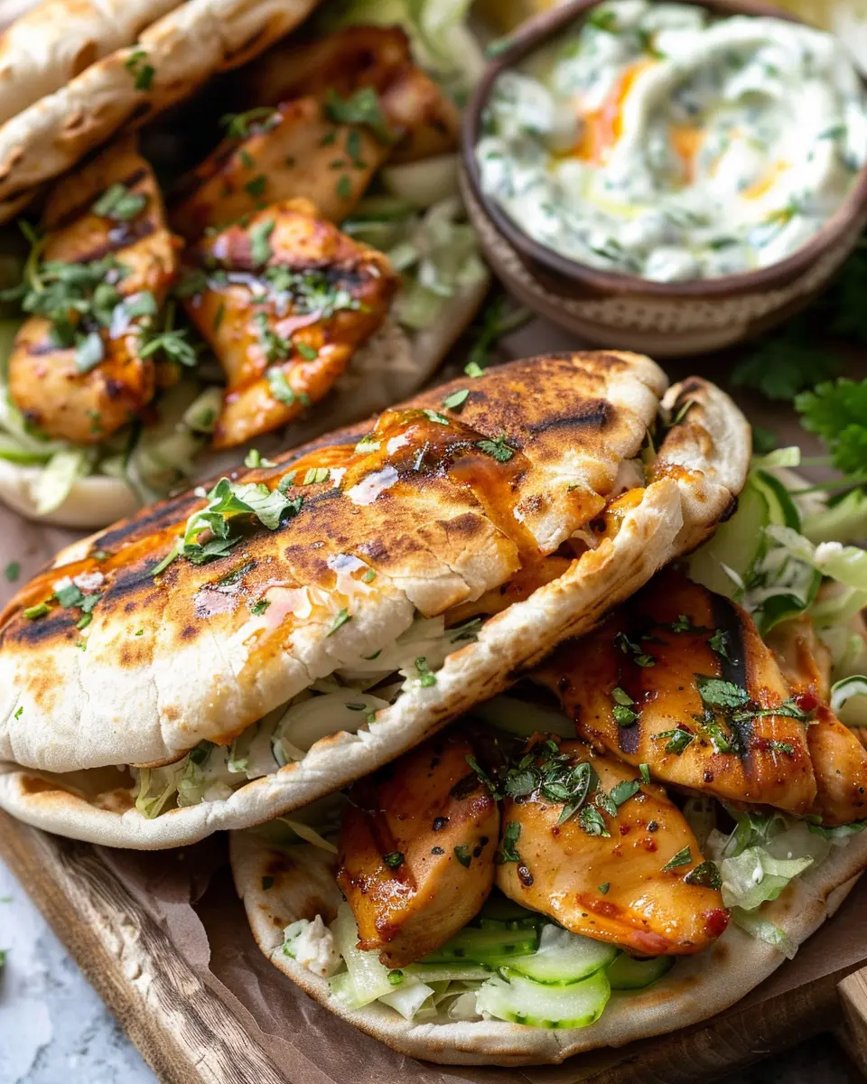 • Serve your chicken pitas with a drizzle of tahini sauce or a dollop of Greek yogurt for a creamy balance.
