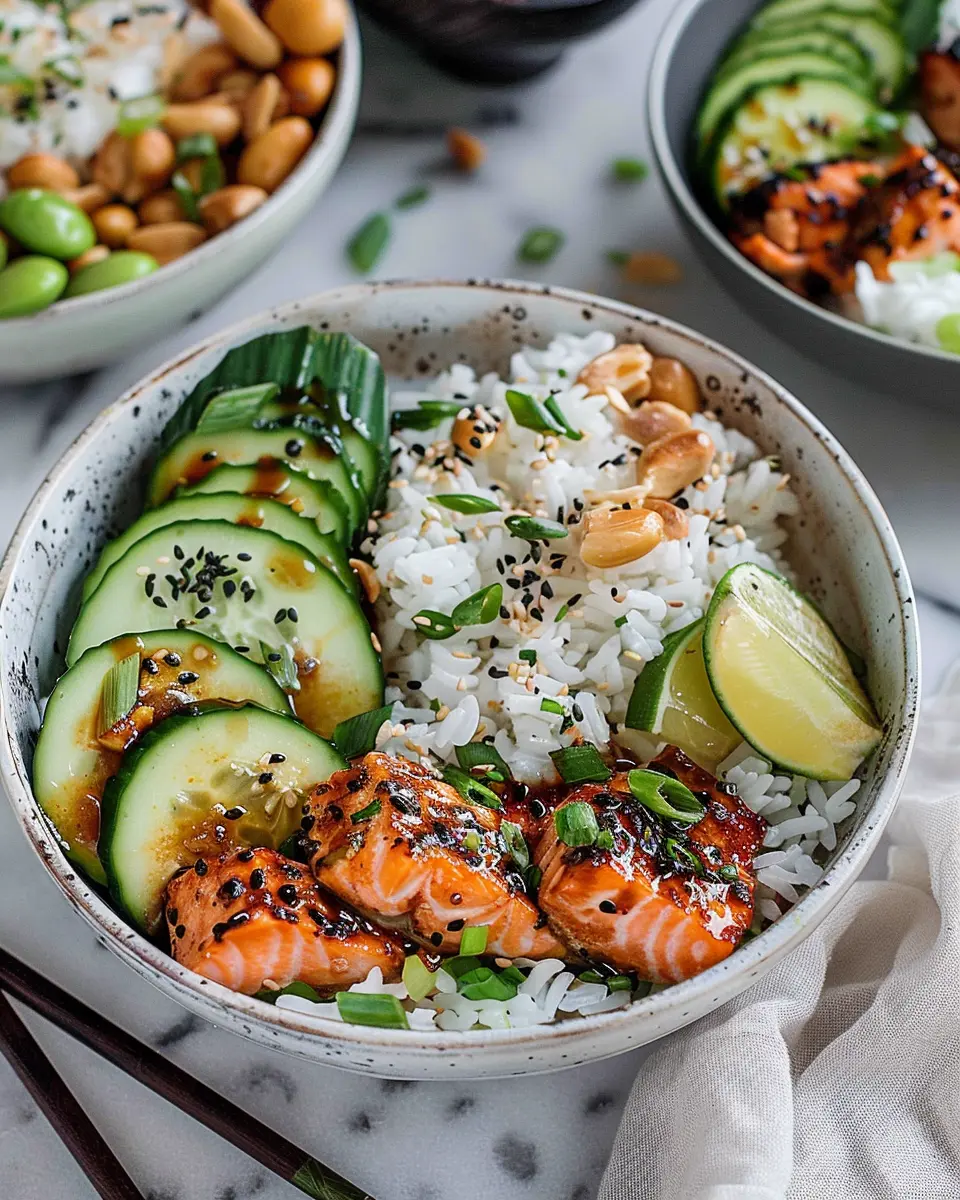Getting everything ready for your spicy salmon bowls is a breeze! You’ll need about 15 minutes to chop your veggies, prepare your salmon, and cook the coconut rice. It’s a perfect little window to whip up some engaging playlists or a quick video call with a friend.