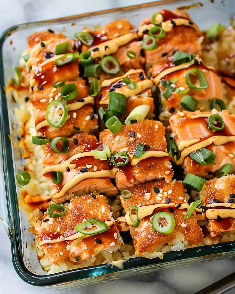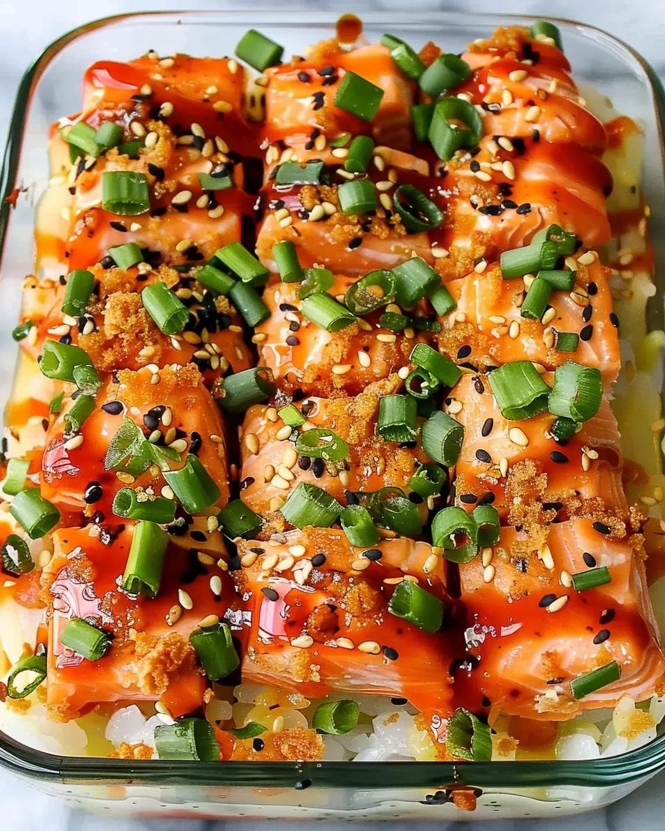 PrintSpicy Salmon Sushi Bake Recipe: Easy Comfort Food Delight