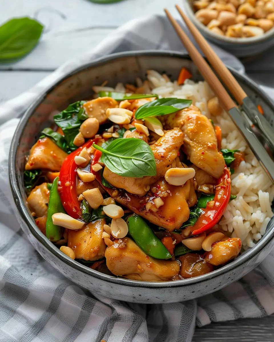 A delicious and easy Thai Peanut Chicken Stir-Fry recipe that brings vibrant flavors and quick preparation to your dinner table.